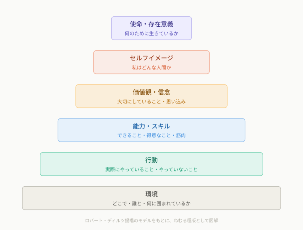 ※図はロバート・ディルツが提唱したモデルをもとに、自分なりに図解しました。